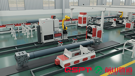 Linha de produção inteligente para corte, chanfro, montagem e soldagem de componentes de tubulação
