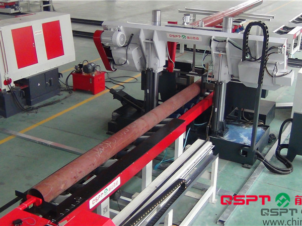 Sistema de transporte de tubos para máquina de serra de fita para corte
